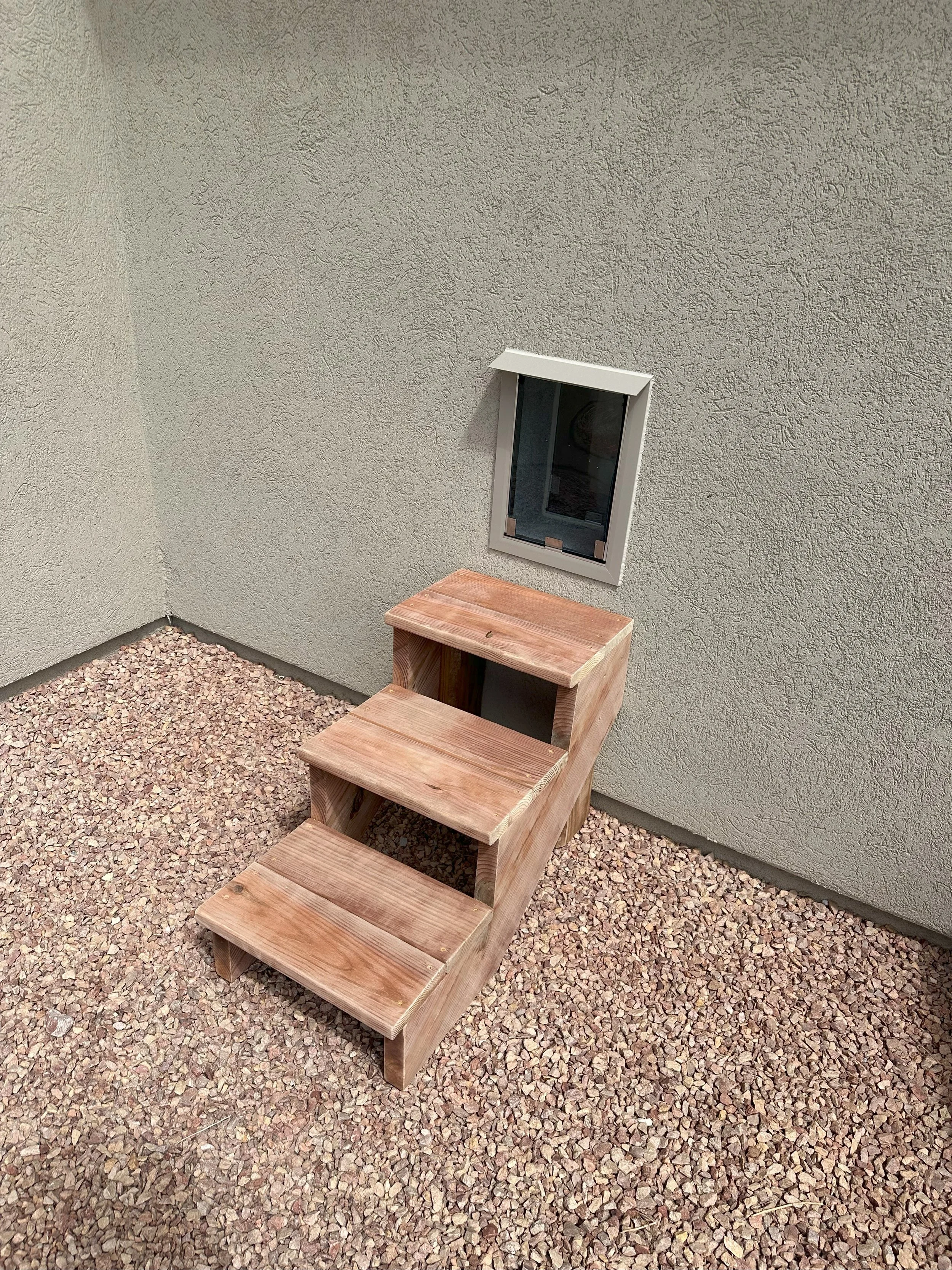 Often a Wall Model pet door will require a few steps to get your pet down to the ground.